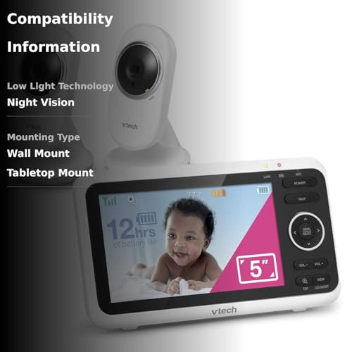 VTech VM350-2 Video Monitor with Battery supports 12-hr Video-mode, 21-hr Audio-mode, 5″ Screen, 2 Cameras, 1000ft Long Range, Bright Night Vision, 2-WayTalk, Auto-on Screen, Lullabies Prices